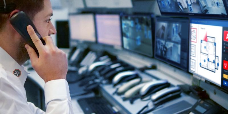 Sicherheitsmitarbeiter in der Notruf- und Serviceleitstelle